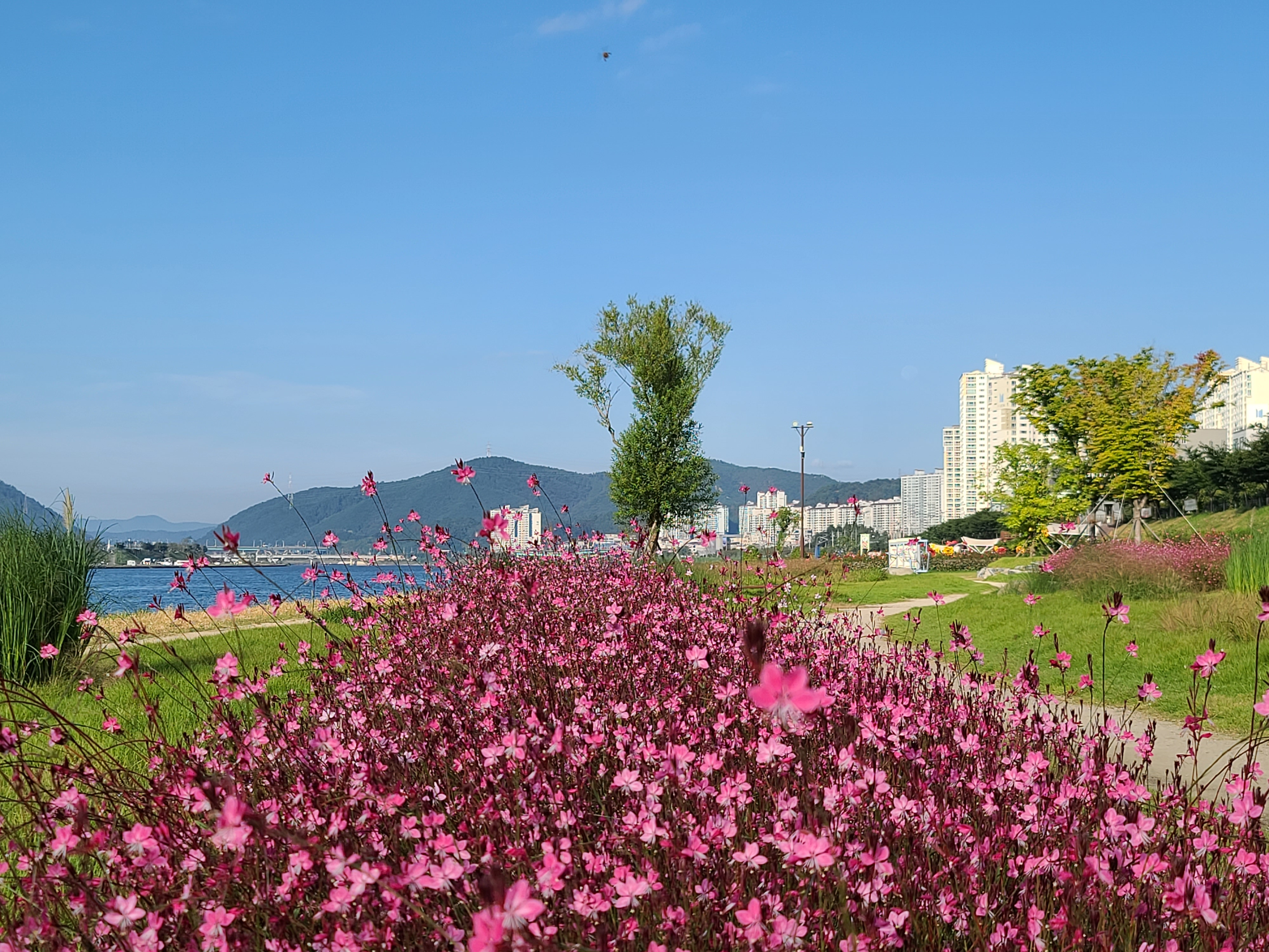 포항 효자 형산강 고수부지 가우라(바늘꽃) -탐방일 : 2021,9,24,오전 가우라는 바늘꽃과의 여러해살이풀로 원산지는 북미지역이다. 이 꽃은 늦여름부터 늦가을까지 붉은색인 홍접초와 흰색꽃인 백접초를 피운다. 꽃을 피운 모양이 날개짓하는 나비를 닮았다고해서 '나비바늘꽃'이란 이름으로도 불립니다. 정말로 수천 수만송이의 꽃들이 바람에 하늘거리는 모양이 꼭 나비들이 나는 듯 황홀하며 사람을 홀리기에 충분하지요 꽃말도 '섹시한 여인'입니다 가우라 나비바늘꽃 - 나무풀꽃이야기 2021.09.25