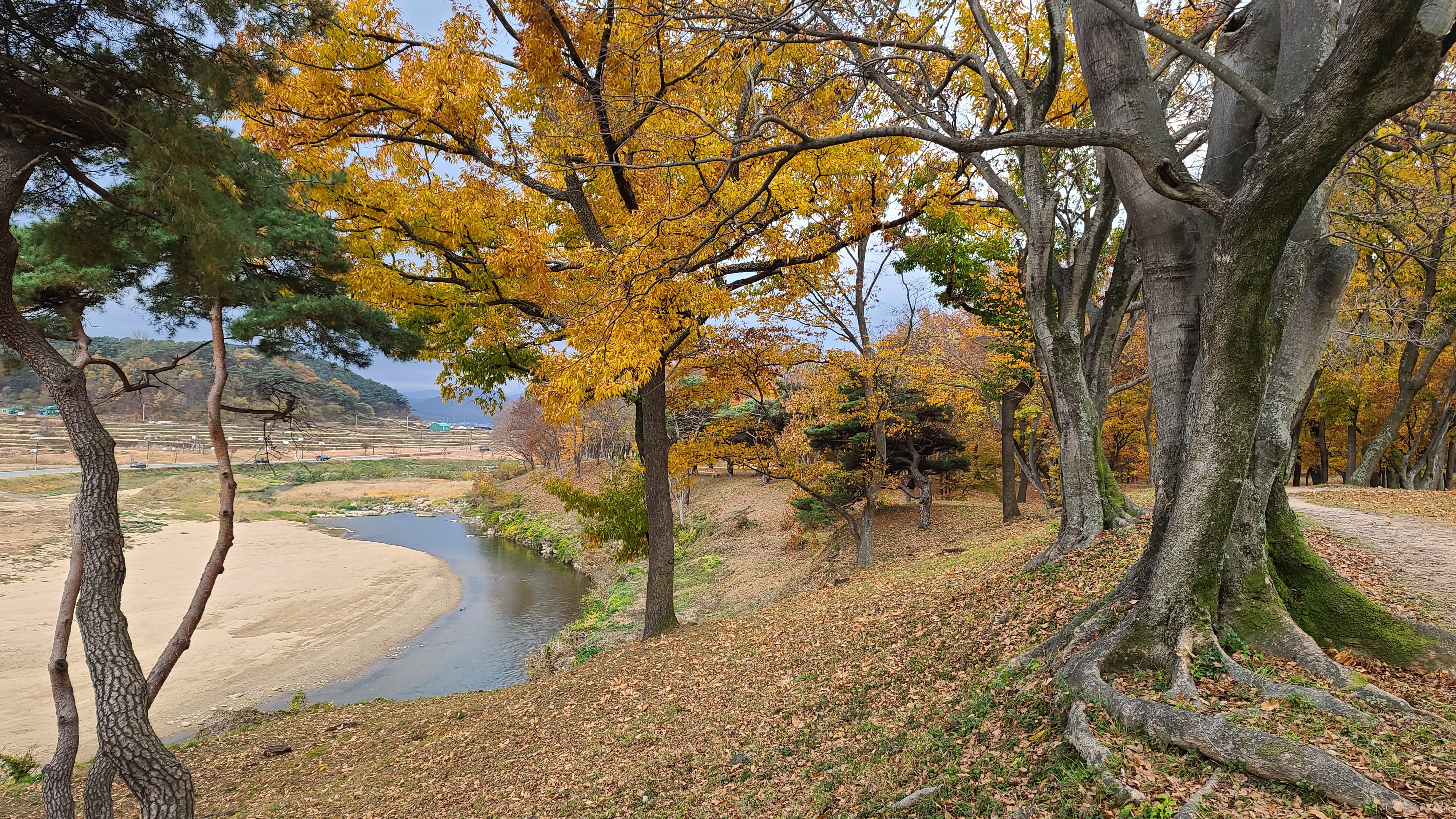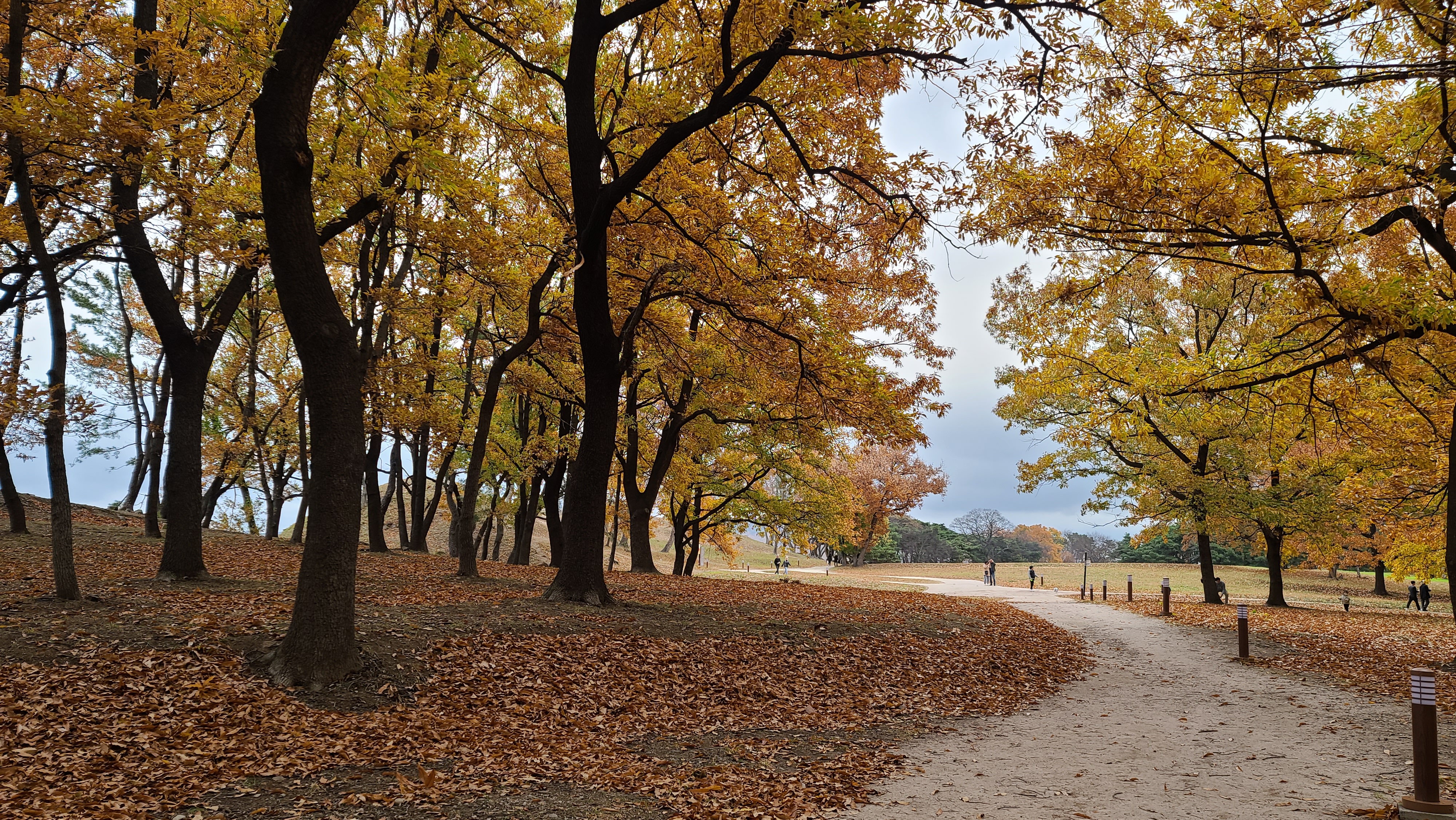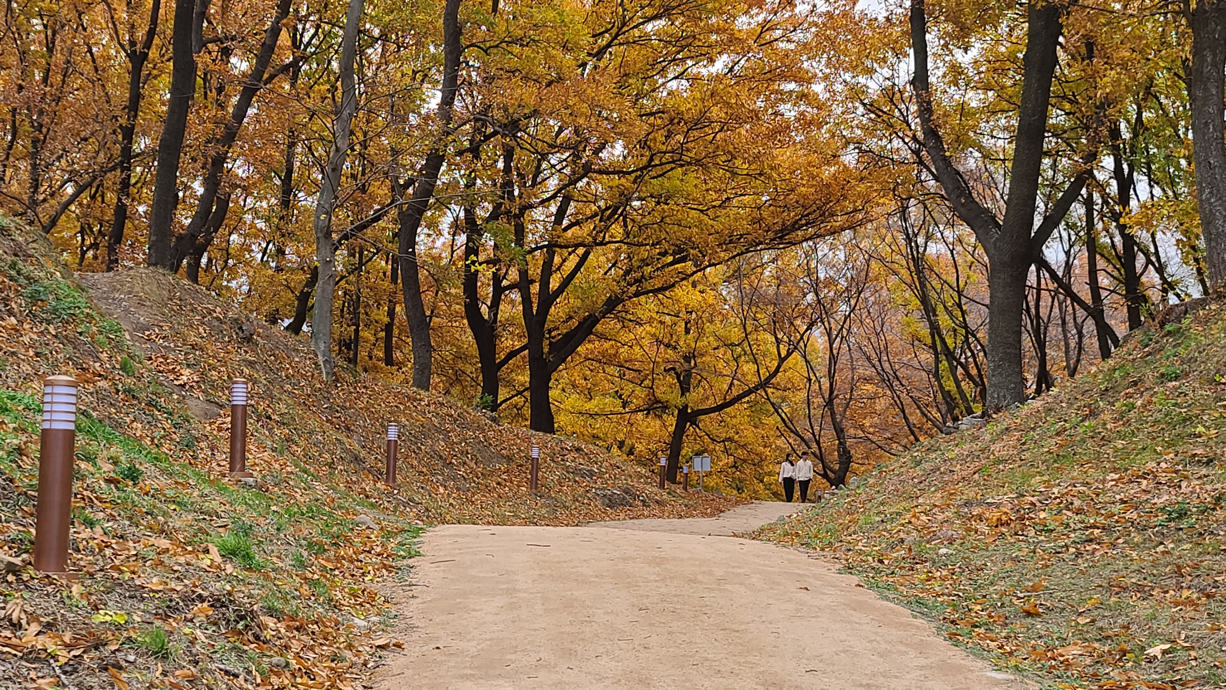 특히 반월성의 오래된 낙엽송의 노란 단풍과 떨어진 낙엽을 배경으로 사진을 찍는 젊은 연인들이 즐겨 찾는 핫 한 단풍명소랍니다.