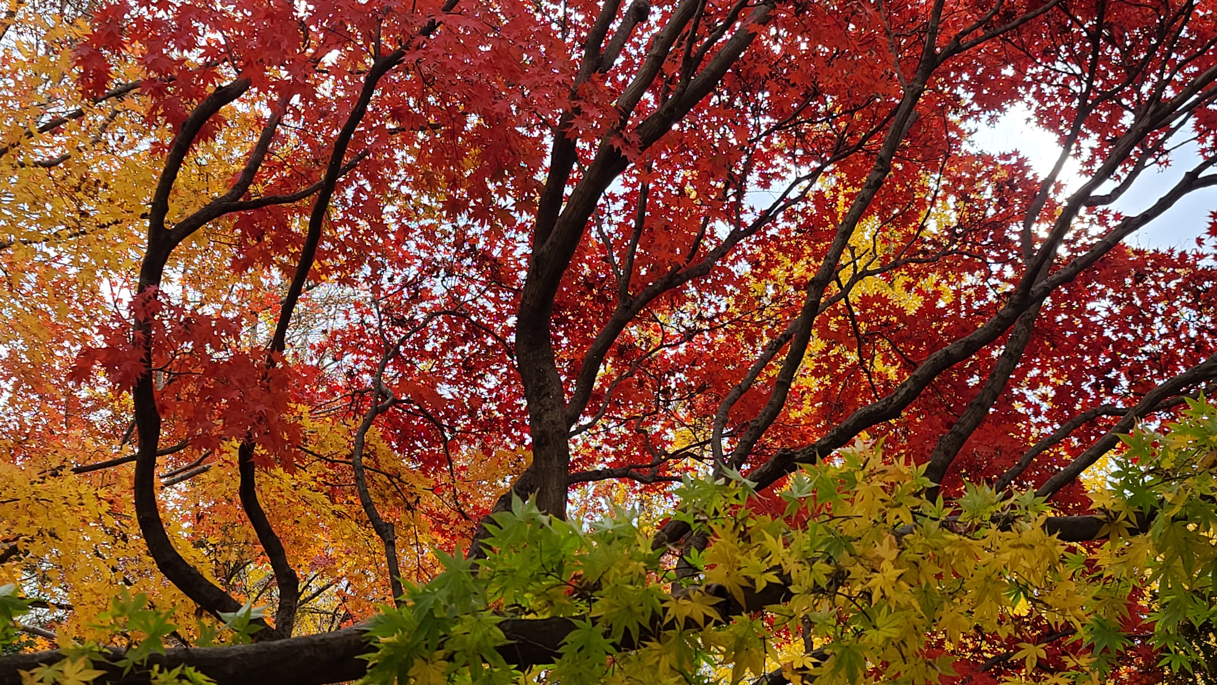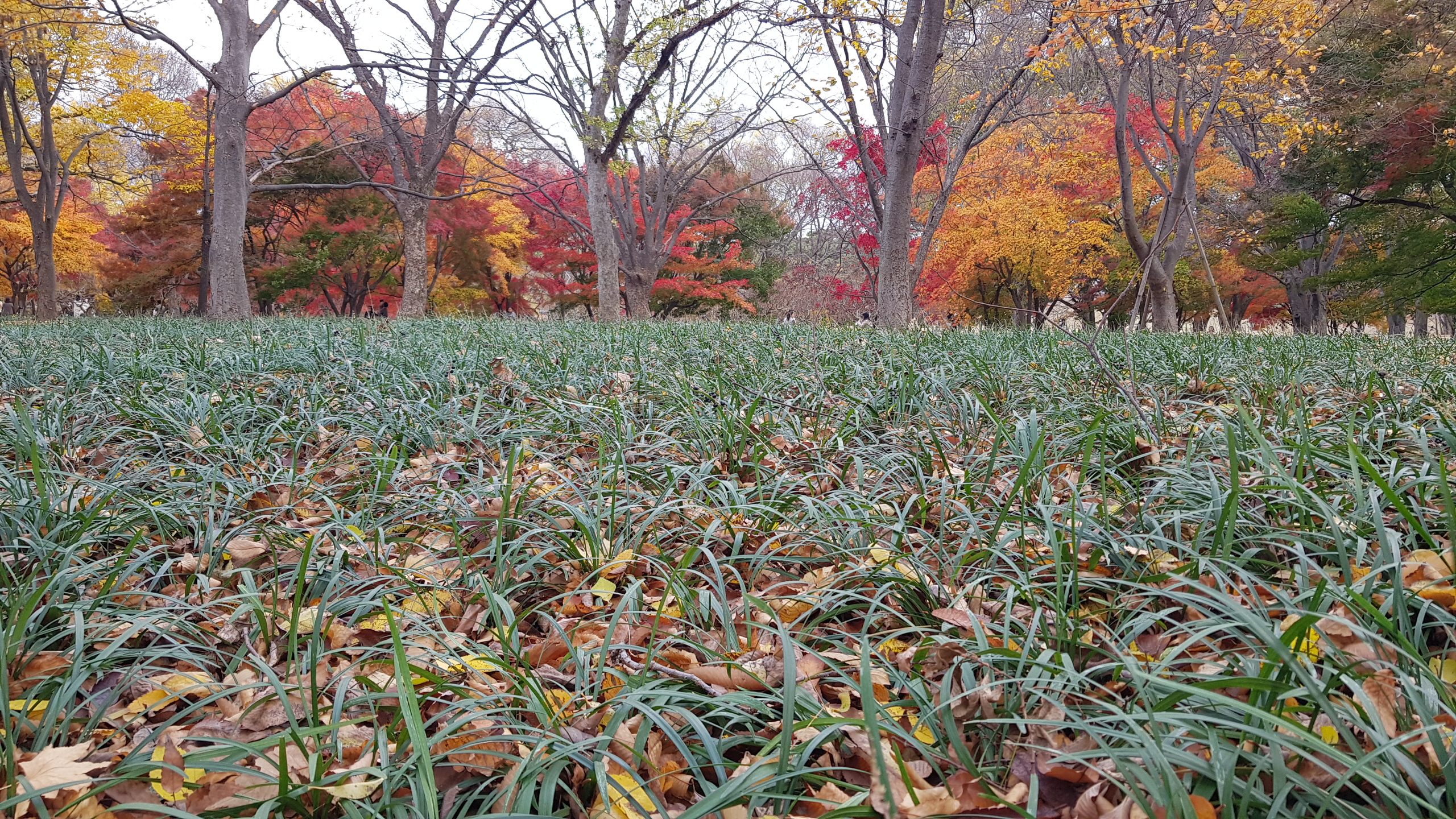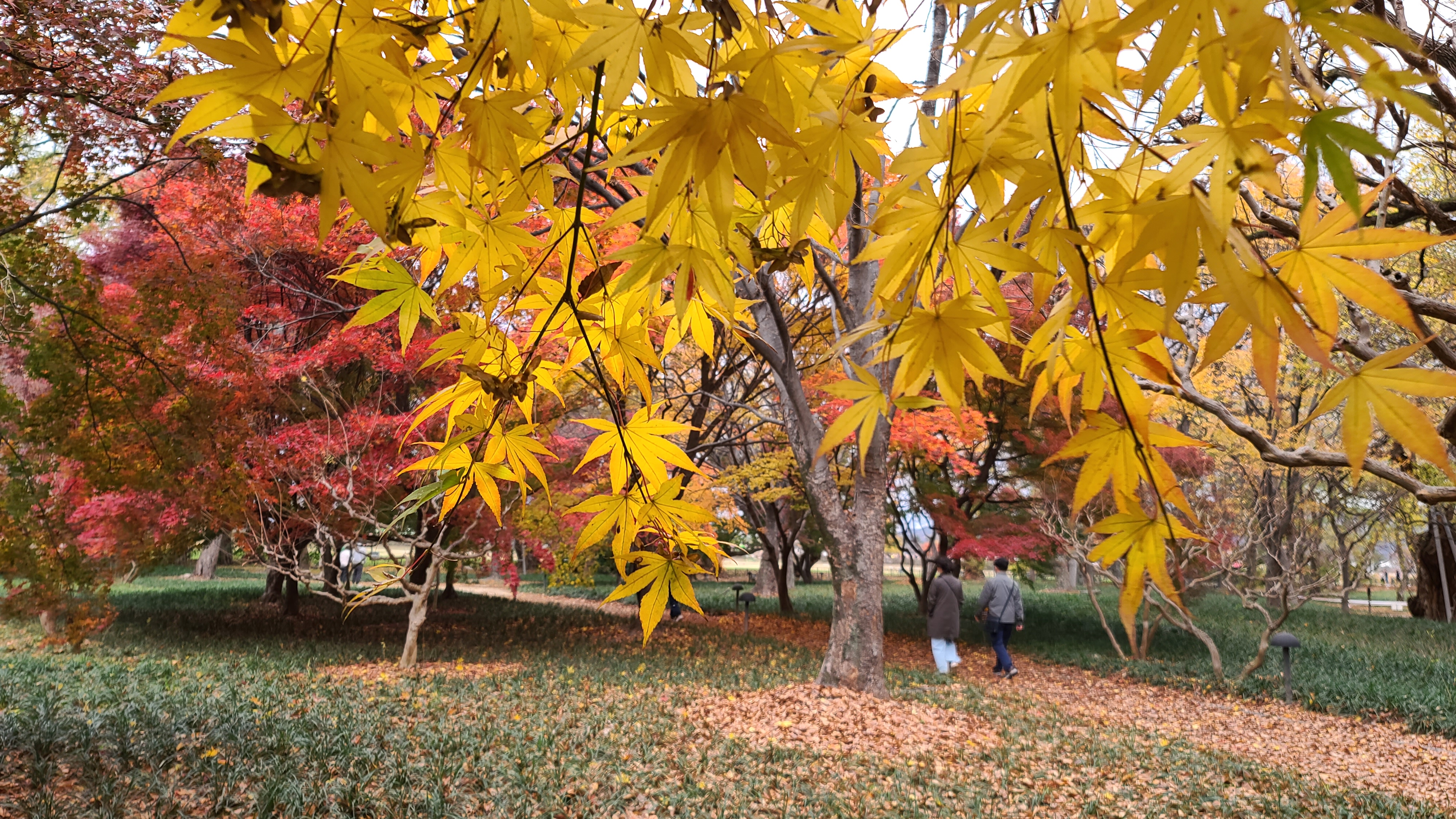 단풍나무 아래 푸른 맥문동도 노랑 붉은 단풍과 묘한 조화를 이룹니다.