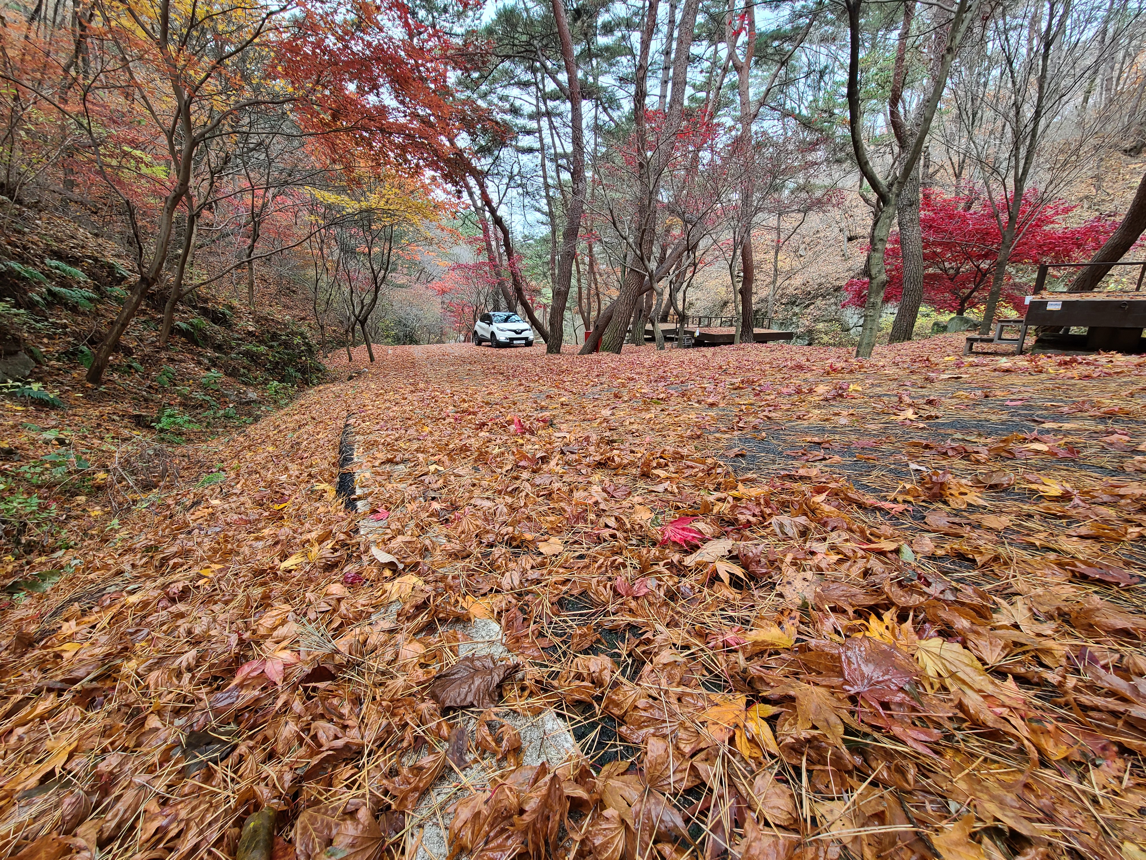 이미 겨울을 느낄 수 잇는 분위기입니다.떨어진 단풍 낙엽이 산더미(?)이네요