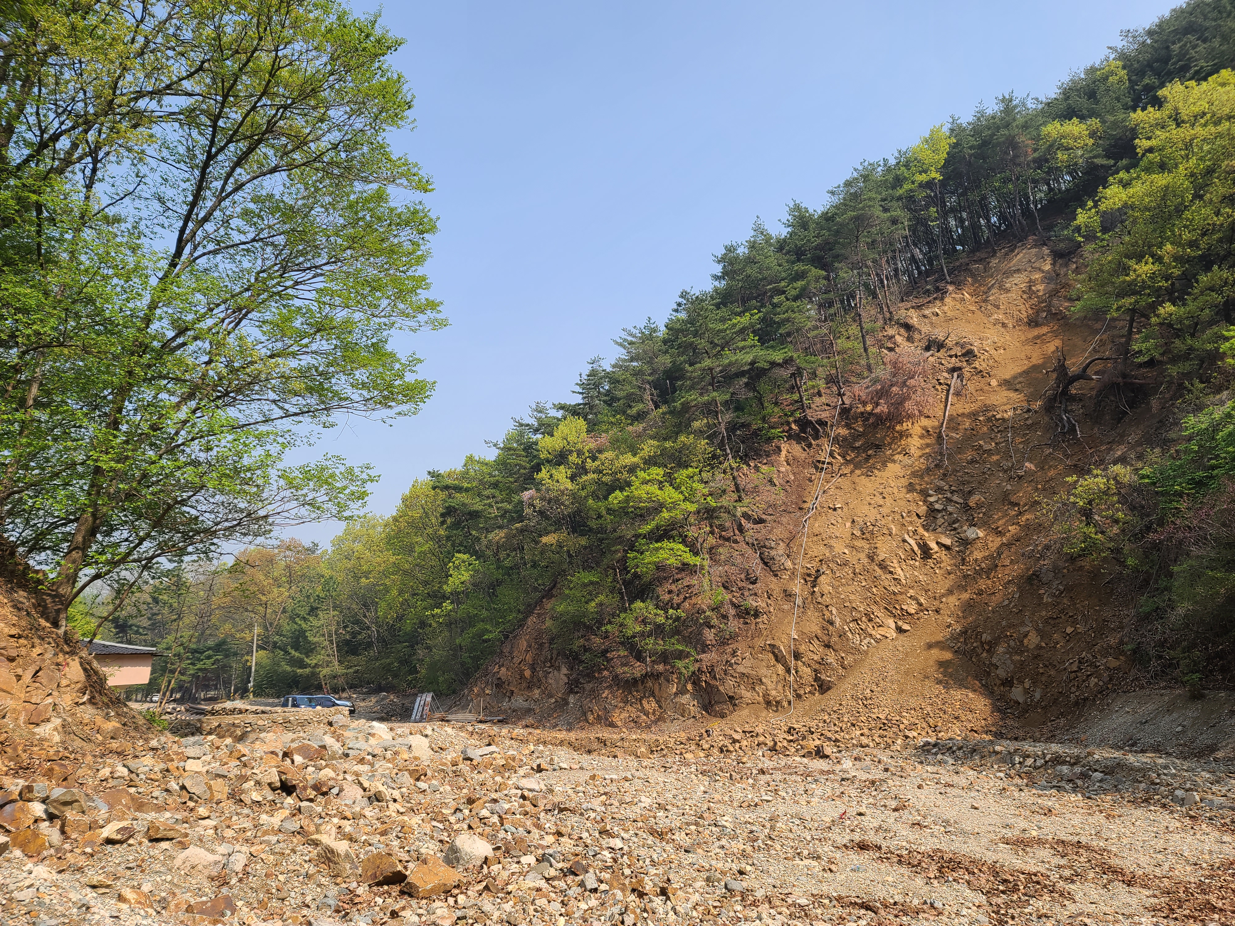 홍계폭포를 가보고 싶었지만 초입에 엄청난 산사태를 보고 위험해서 포기합니다.