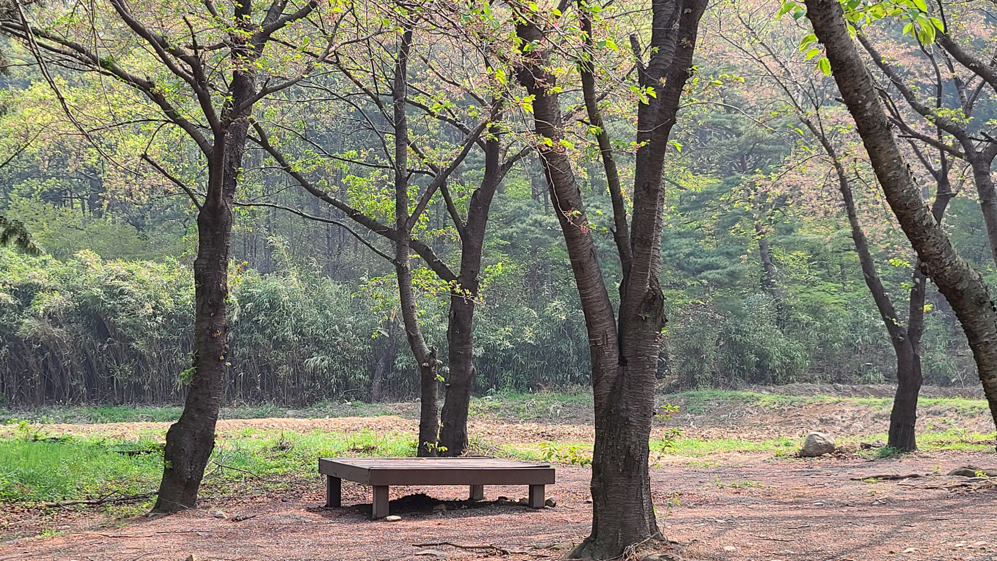 홍계숲은 소나무와 벚나무가 주종이면 주변 산세와 어우러져 조용한 곳입니다