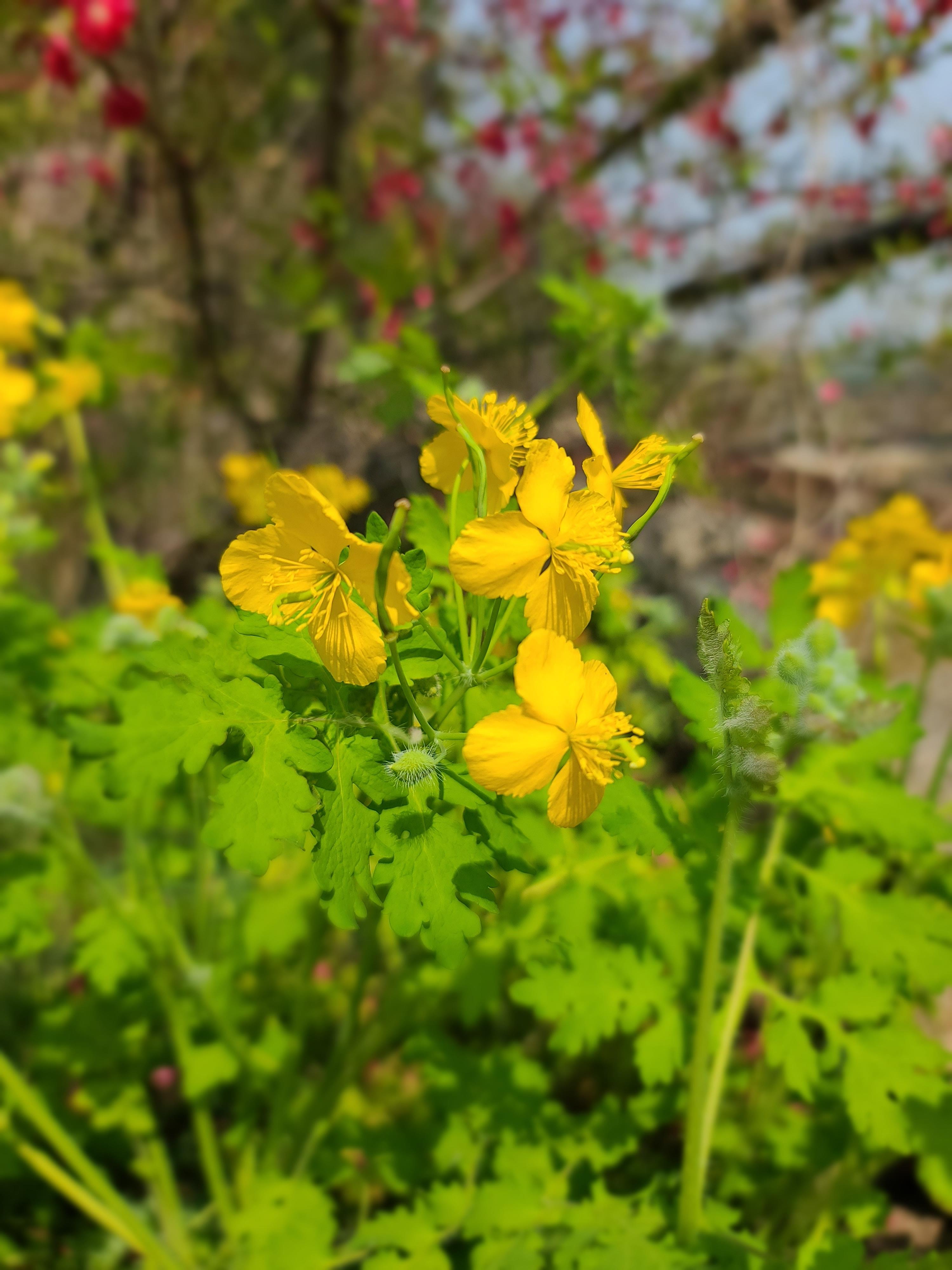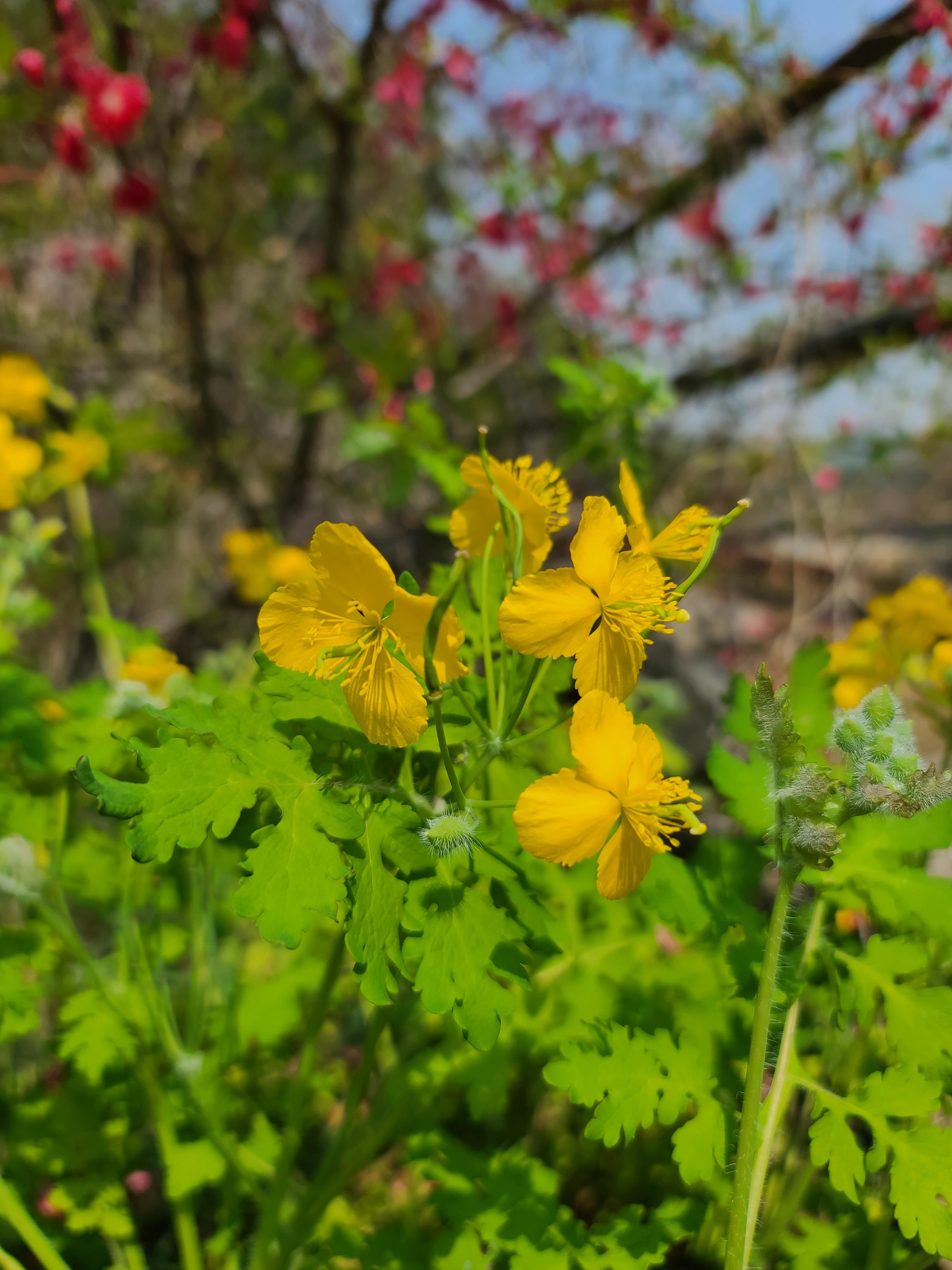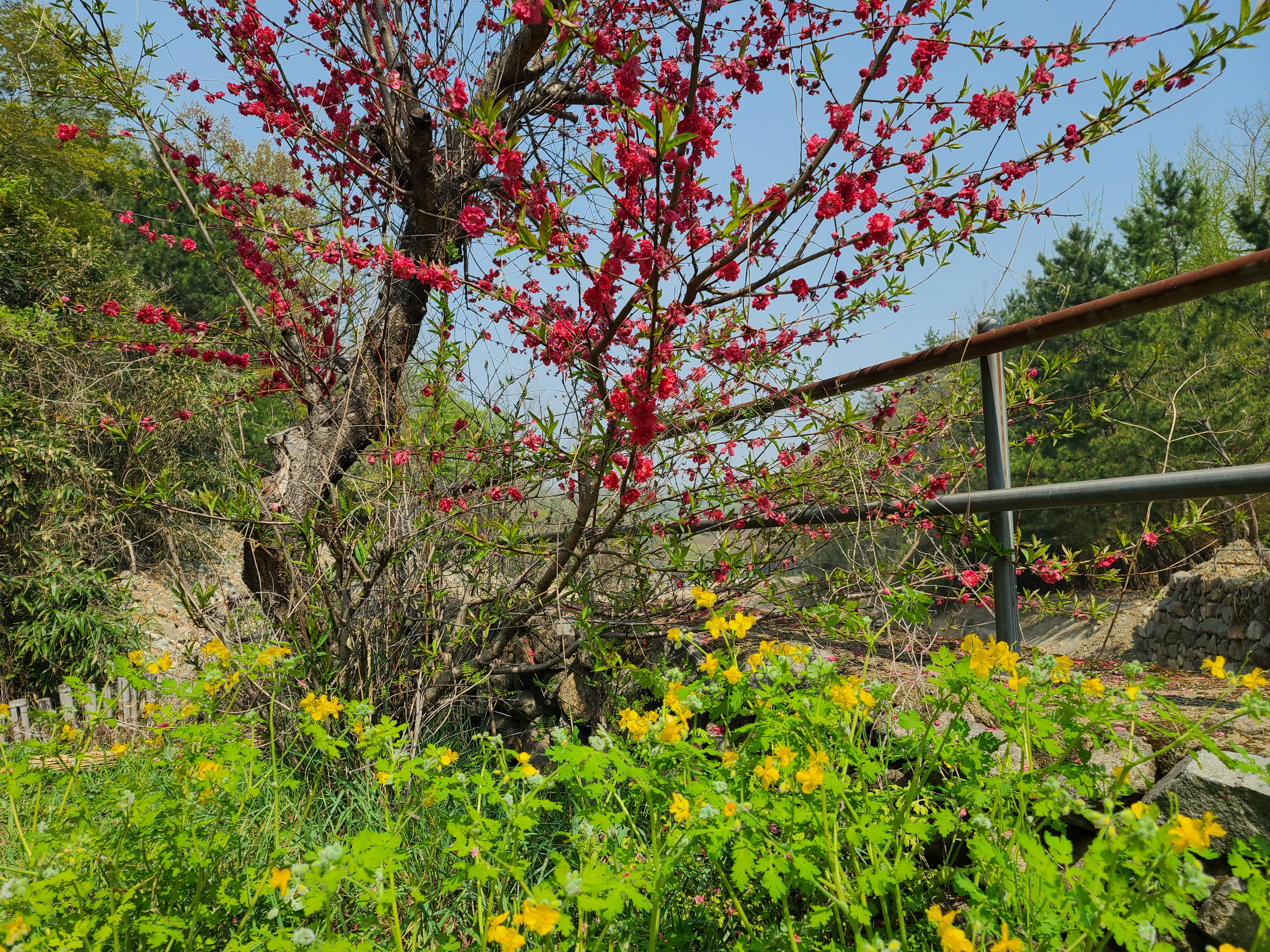 복사꽃 아래는 애기똥풀입니다.