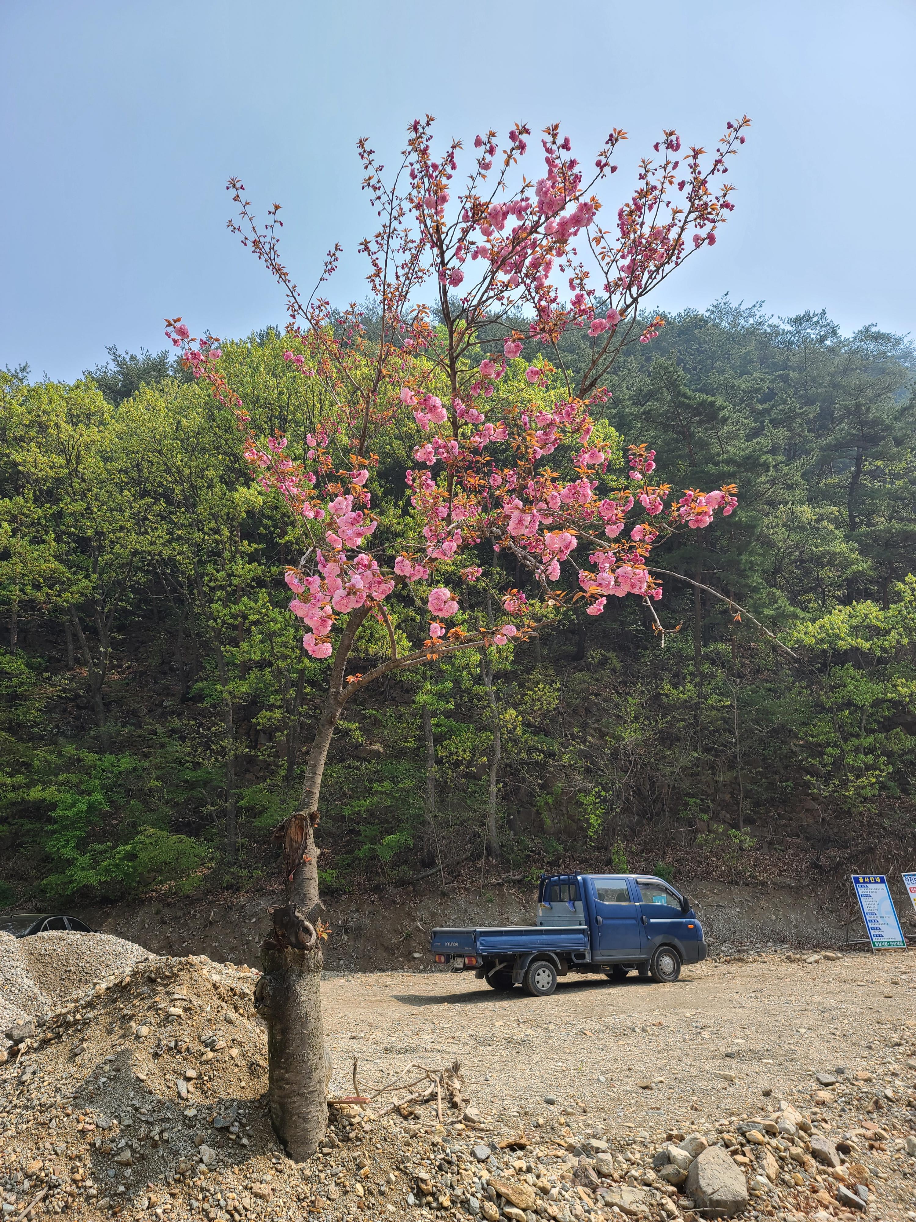 밖을 본 풍경, 딱 1그루의 겹벚꽃이 피었네요